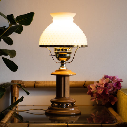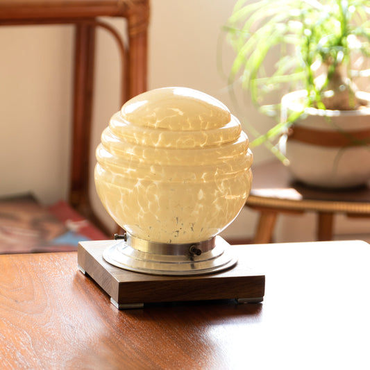 Lampe artisanale en bois et opaline perlée