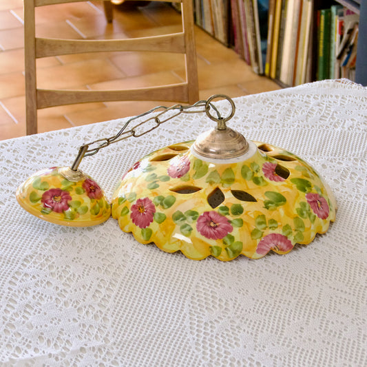 Plafonnier en faïence ajourée peint à la main - jaune et rose
