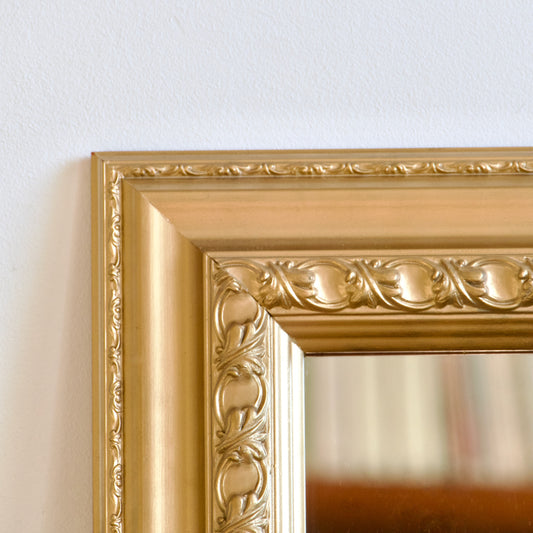 Petit miroir rectangulaire en résine dorée à moulures