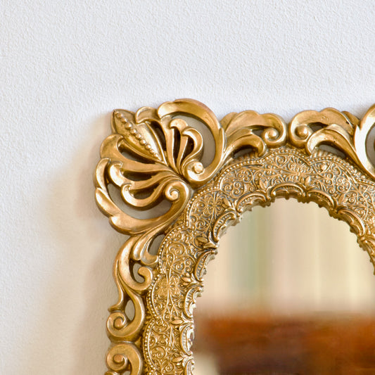 Petit miroir doré ovale vintage à moulures baroques