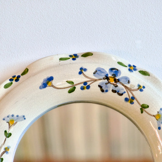 Miroir artisanal en céramique de Desvres, atelier Regnier, peint main