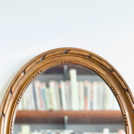 Miroir ancien ovale en bois sculpté