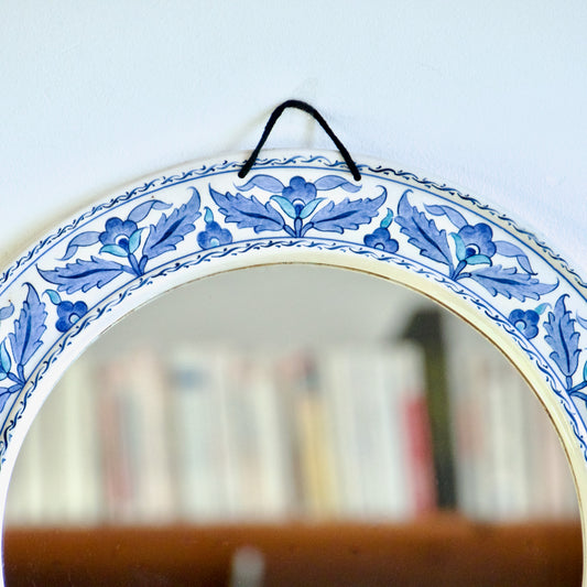 Miroir bombé artisanal en céramique peint à la main