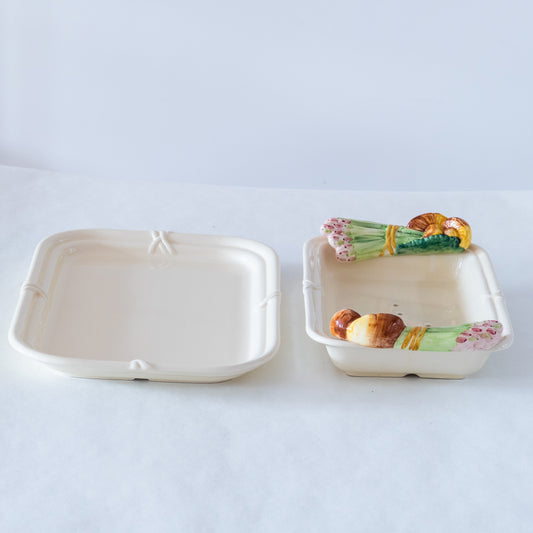 Passoire / égouttoir + plat en barbotine champignon asperge Siléa