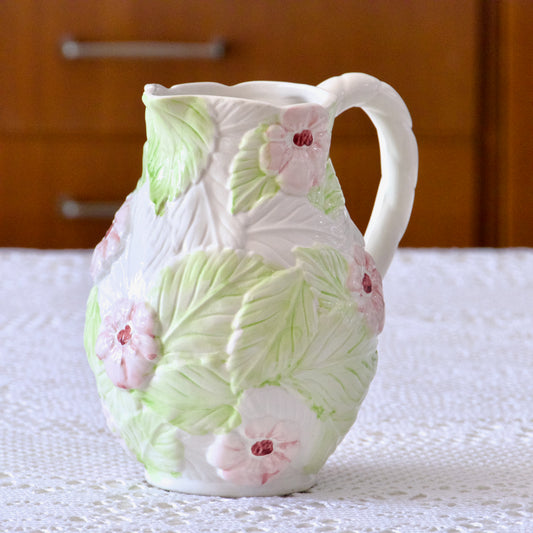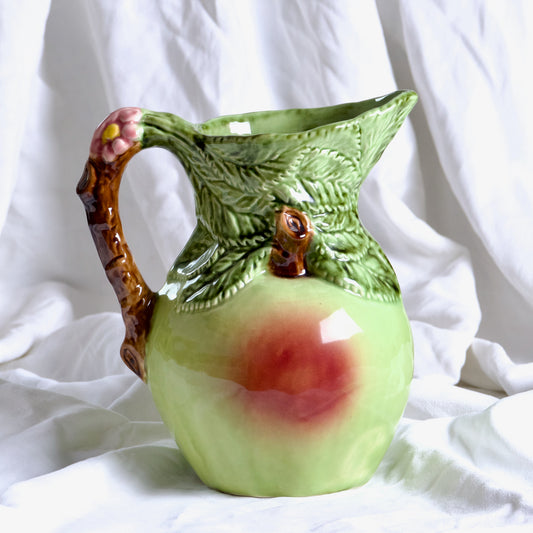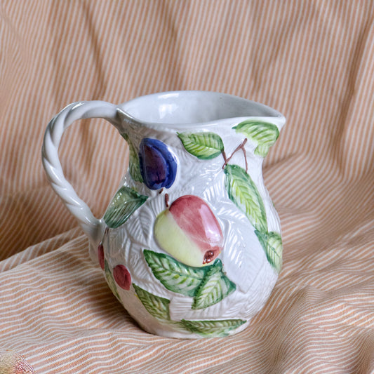 Carafe vintage en barbotine feuilles et fruits - peint main