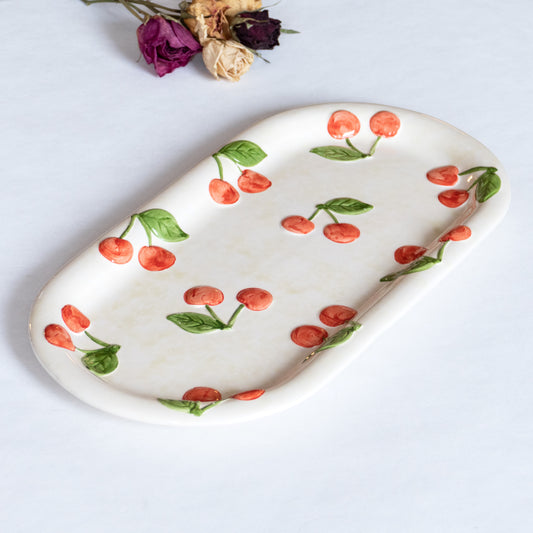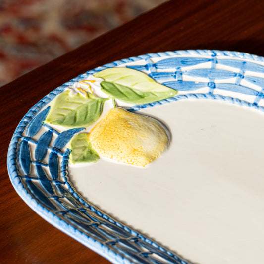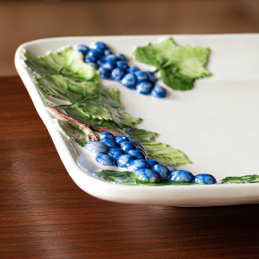 Plat rectangulaire barbotine raisin feuilles de vigne