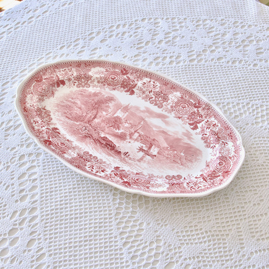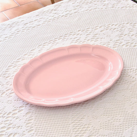 Grand plat ovale Salins-les-Bains en faïence rose