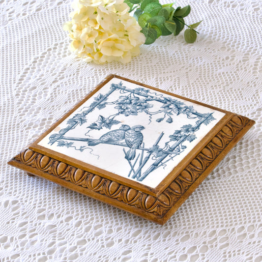 Grand dessous de plat Longwy oiseaux - terre de fer modèle bleu