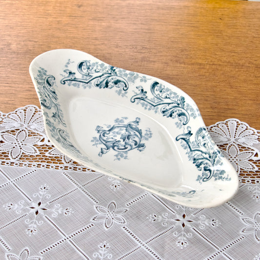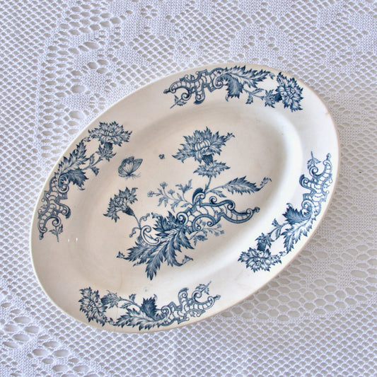 Grand plat ovale XIXe Longwy "Fismes" - terre de fer