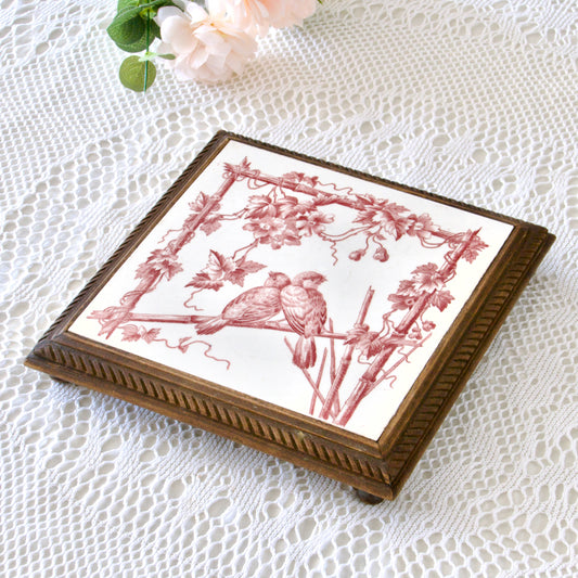 Grand dessous de plat Longwy oiseaux - terre de fer modèle rouge