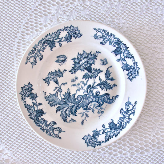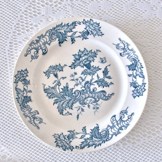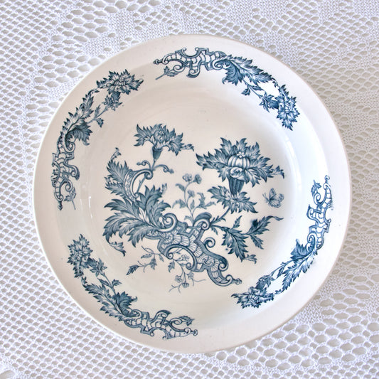 Grand plat rond XIXe Longwy "Fismes" - terre de fer