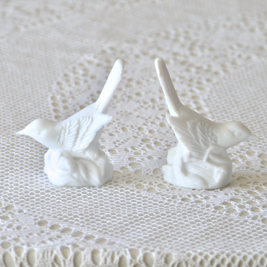 Duo de statuettes oiseaux en biscuit de porcelaine