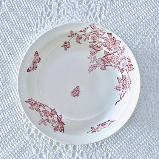 Grand saladier / plat creux ancien Badonviller oiseaux et papillons - terre de fer