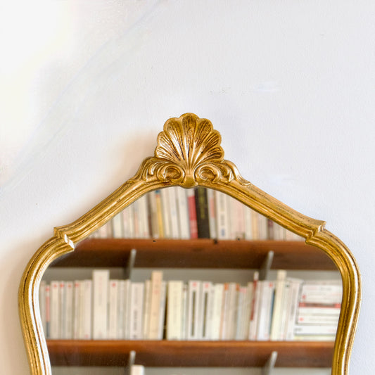 Miroir coquille en bois doré à la feuille d'or