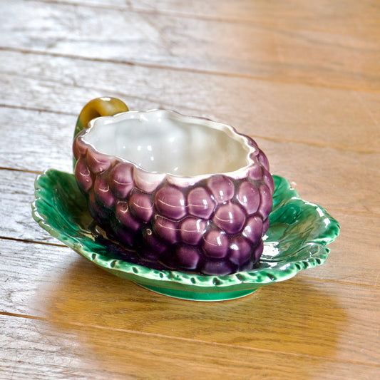 Saucière sur plateau ancienne en barbotine raisin de Sarreguemines