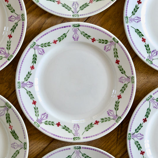 Assiettes plates XIXe Sarreguemines décor de rose