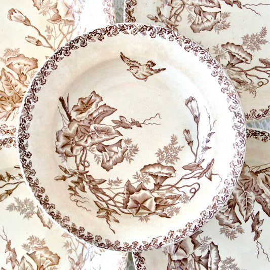 8 assiettes creuses Onnaing "Liserons" - terre de fer sépia