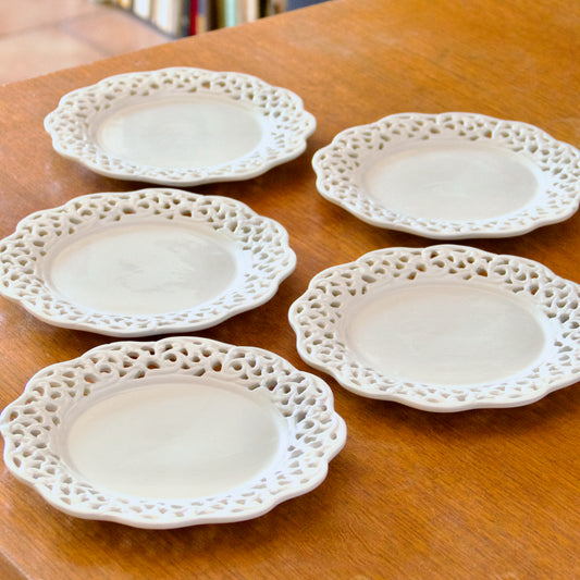 5 assiettes à dessert en faïence ajourée dentelle
