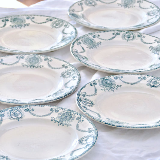 9 assiettes plates anciennes, Salins "Petit Trianon" - terre de fer