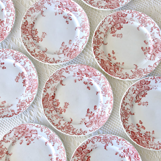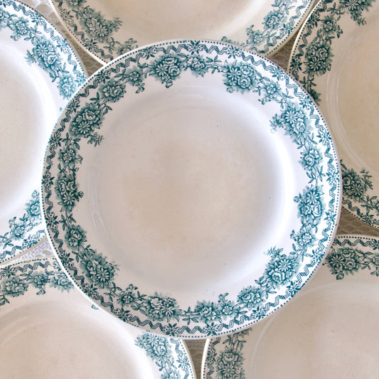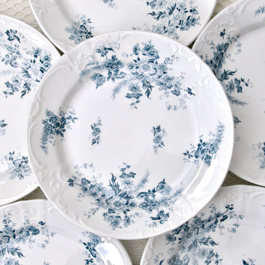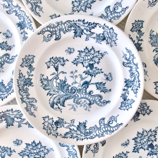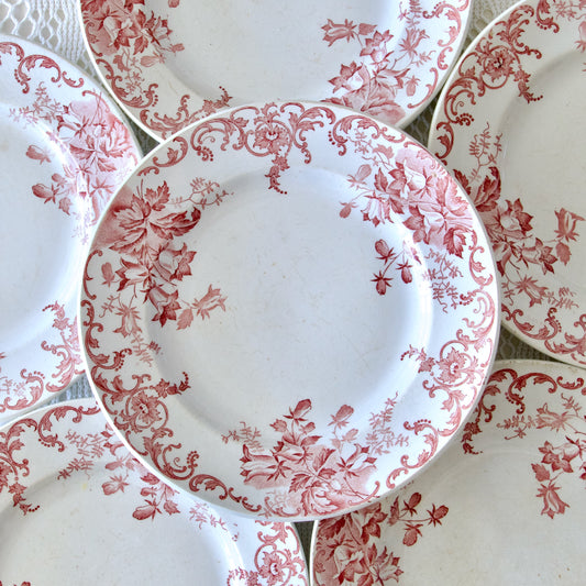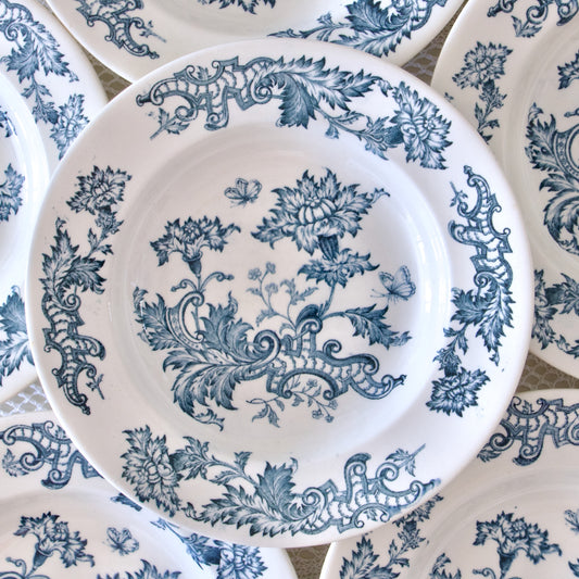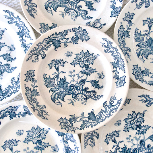 6 assiettes plates XIXe Longwy Fismes - terre de fer