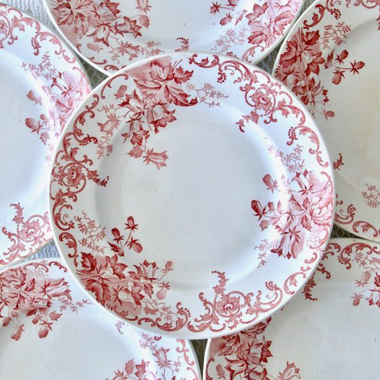 18 assiettes plates XIXe Longwy "Fismes" - terre de fer