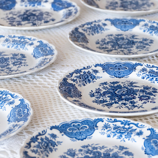 7 assiettes à dessert Staffordshire "Ridgway" bleu