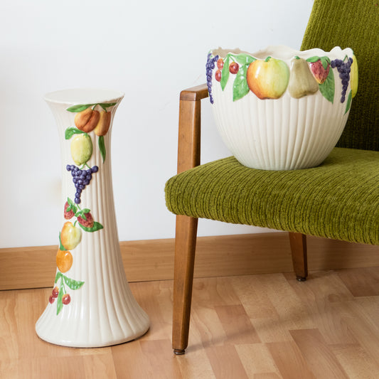 Colonne et cache-pot en faïence fruits