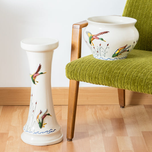 Colonne et cache-pot en faïence canard