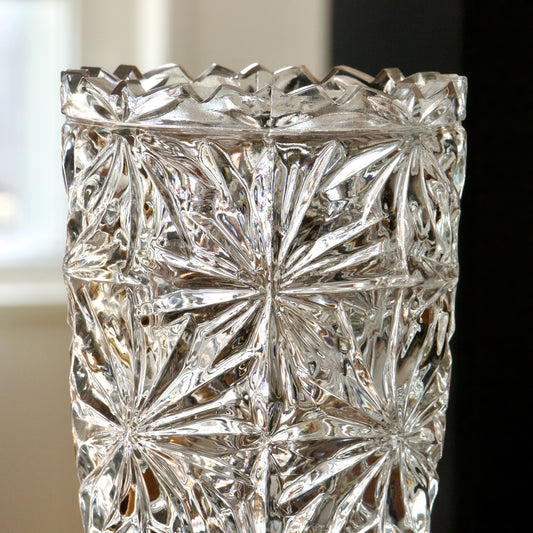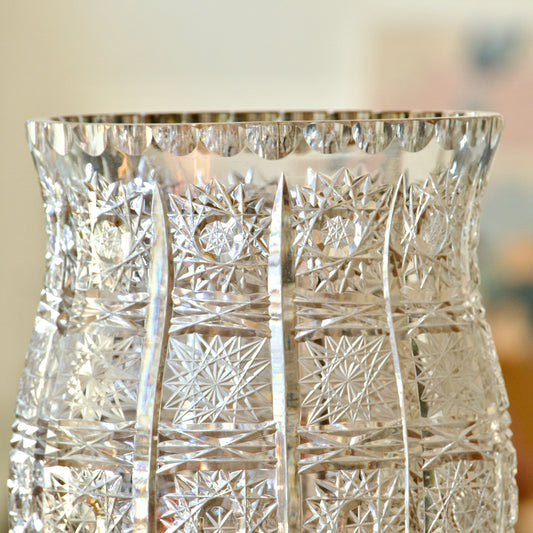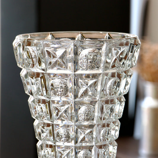 Grand vase vintage en verre taillé en étoiles