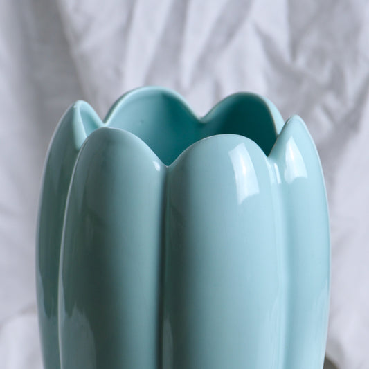 Grand vase années 1970 turquoise forme tulipe