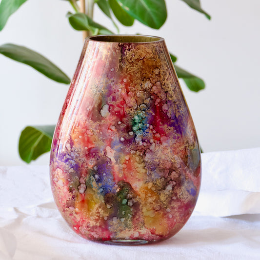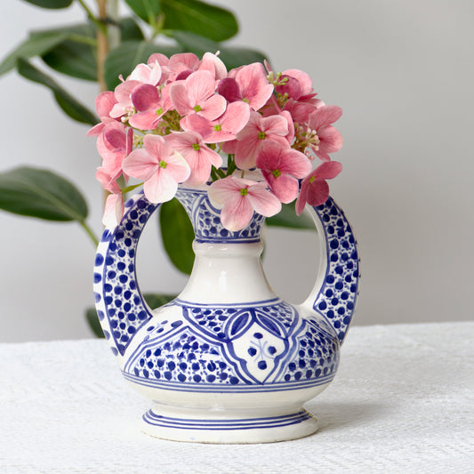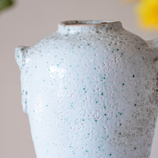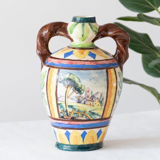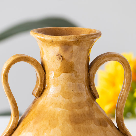Grand amphore artisanale en terre cuite émaillé - décor oiseau