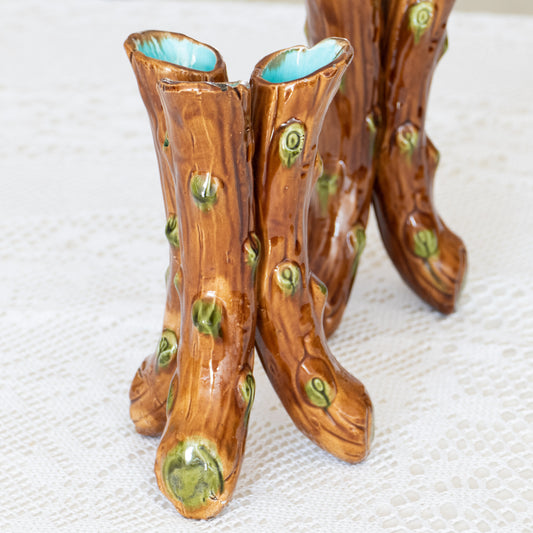 Paire de vases Art Nouveau en barbotine trompe-l'oeil branches