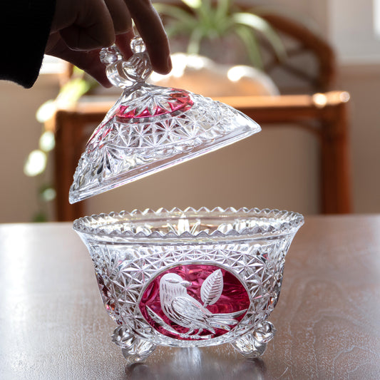 Bonbonnière en cristal Hofbauer modèle oiseaux rubis