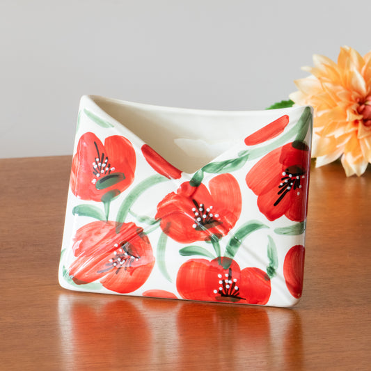 Porte-courrier coquelicots peint à la main