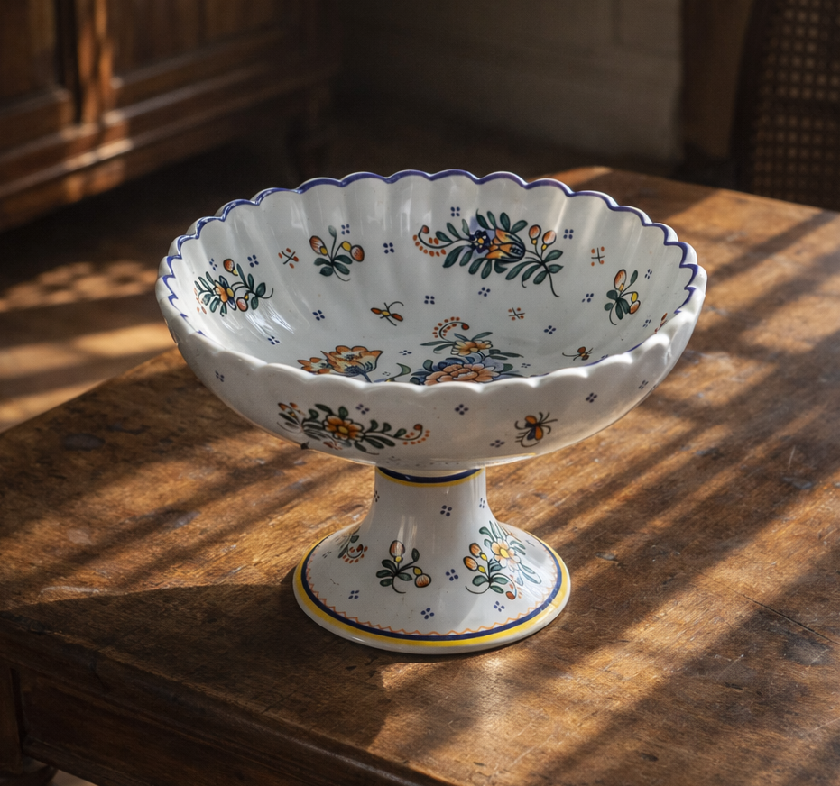 Coupe à fruits / compotier artisanal du Moustiers, entièrement peint à la main.