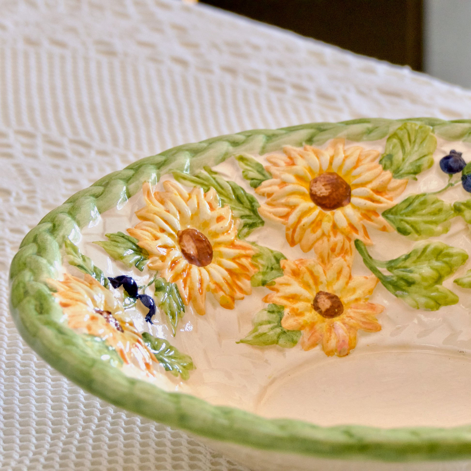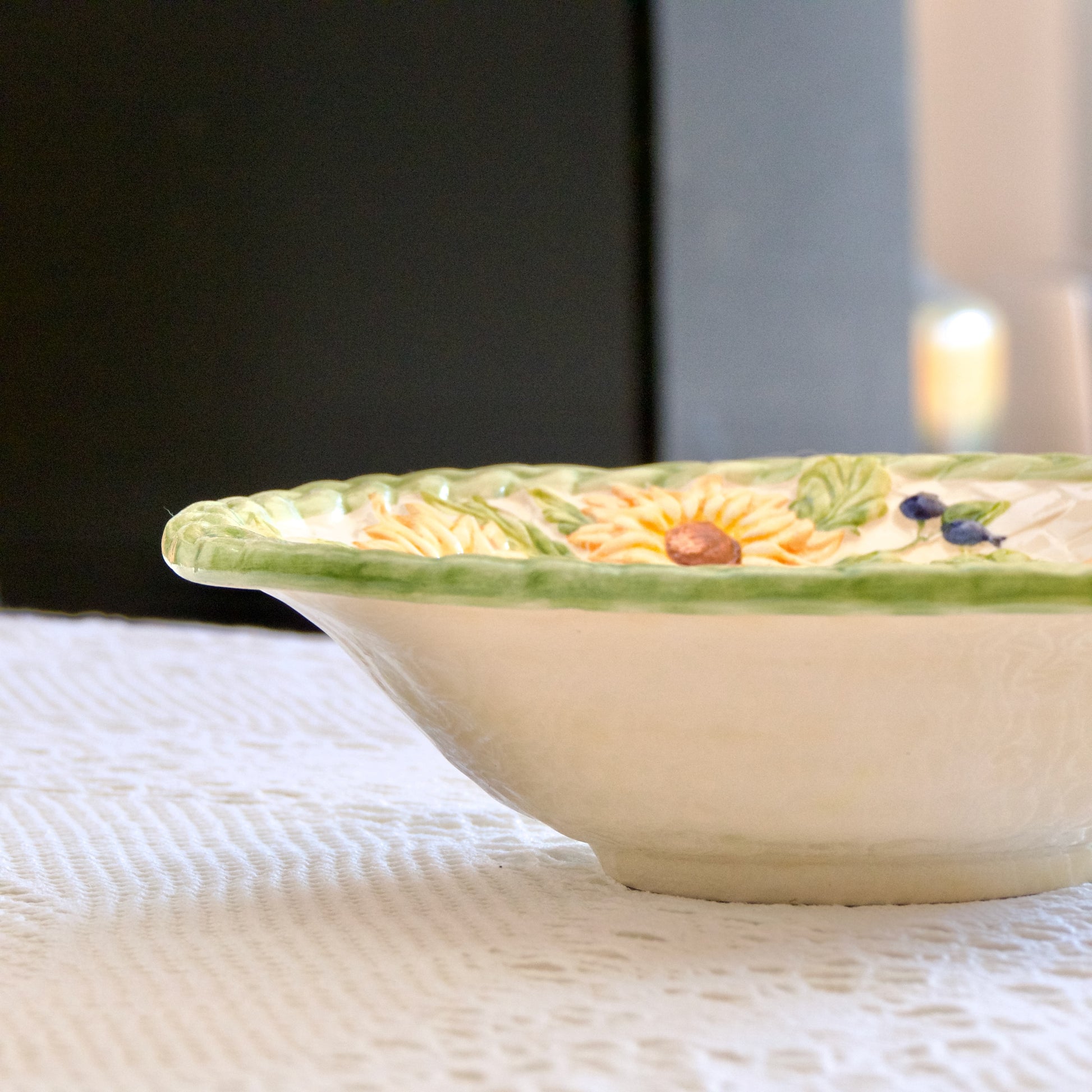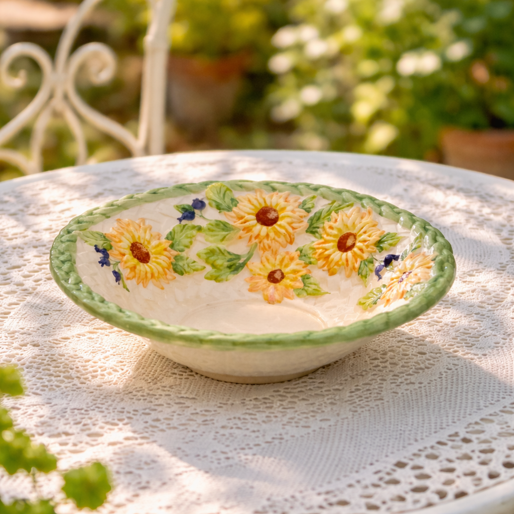 Grand saladier en barbotine tournesol peint à la main