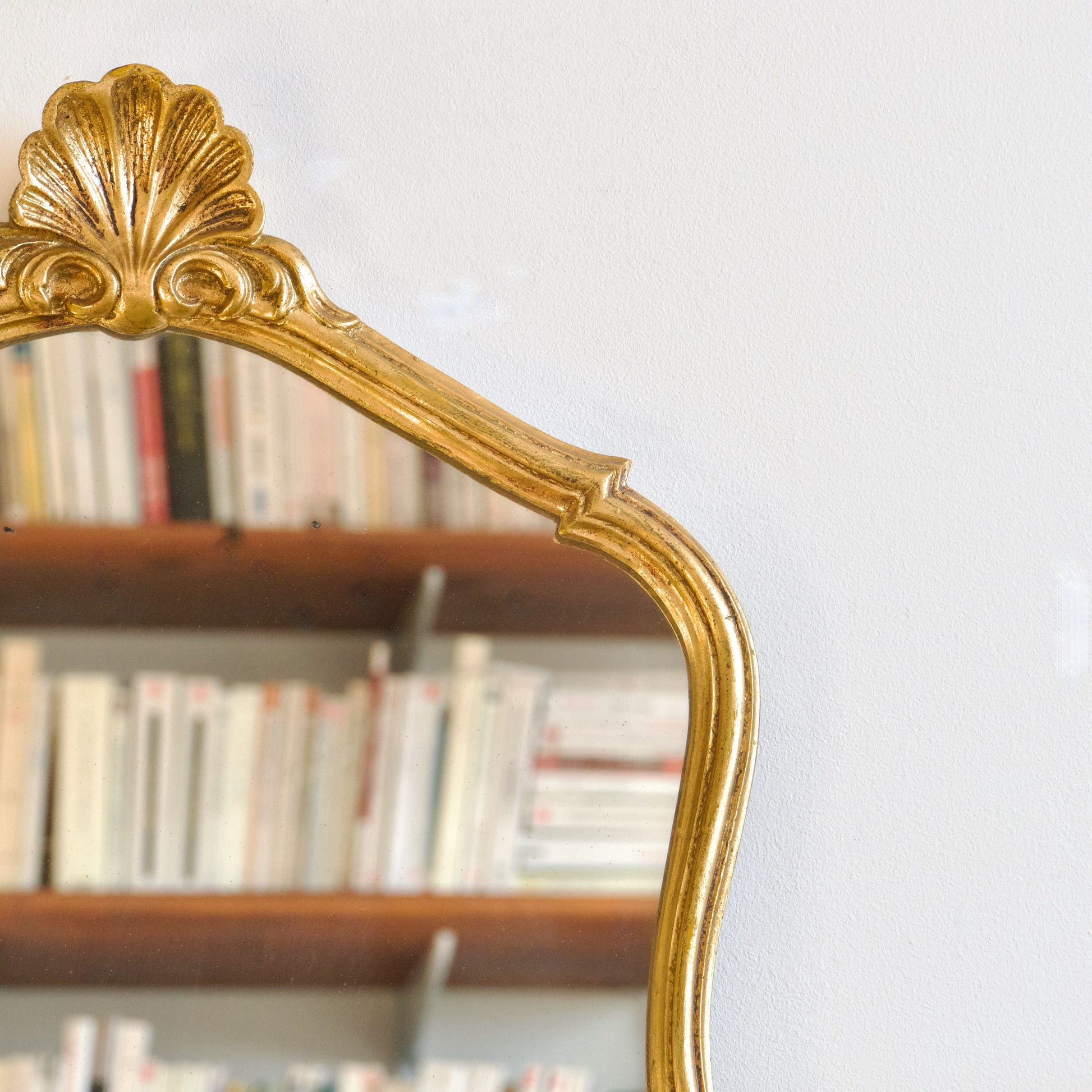Grand et joli miroir coquille ancien, en bois doré à la feuille d’or.