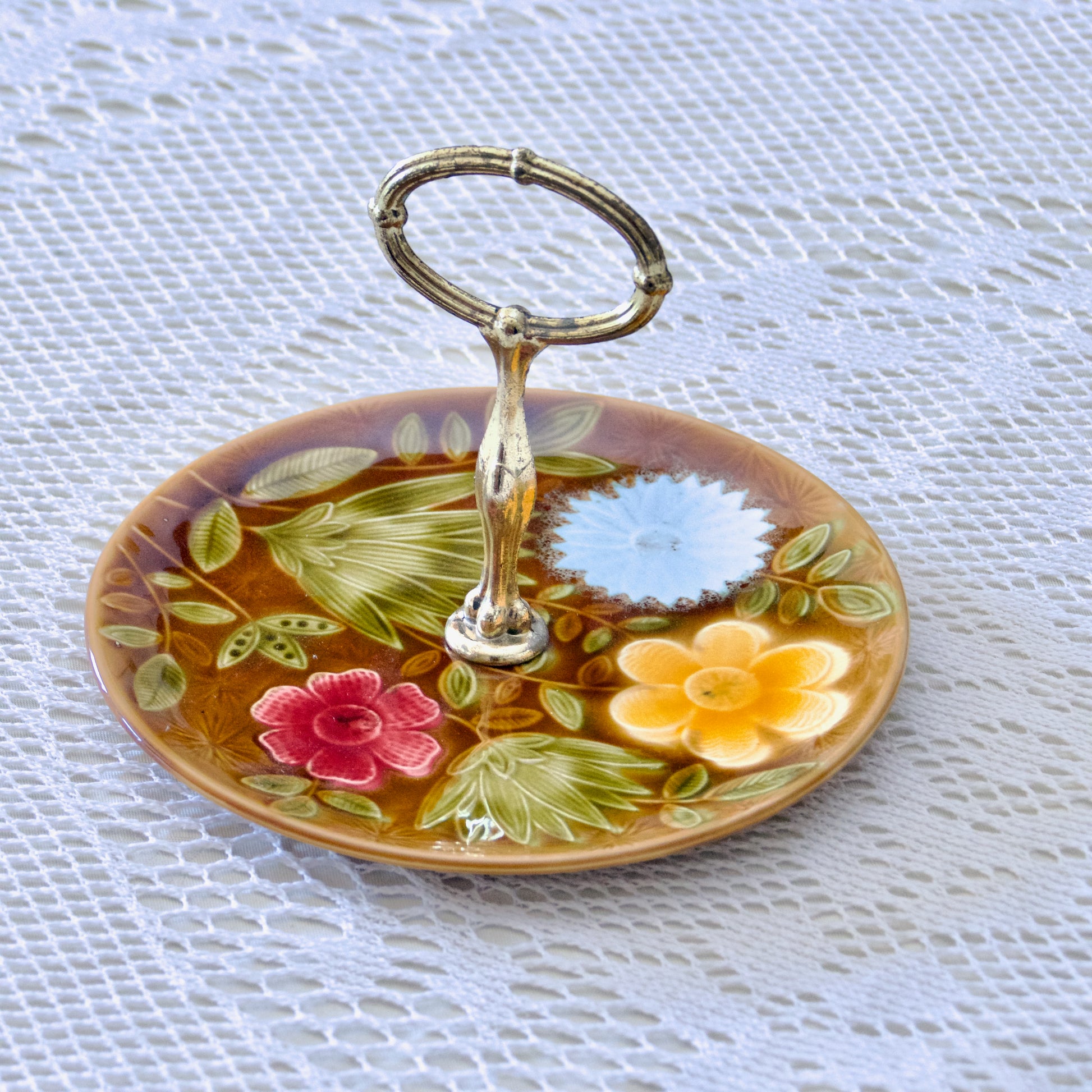 Plateau à fromage en barbotine de Sarreguemines, décor floral