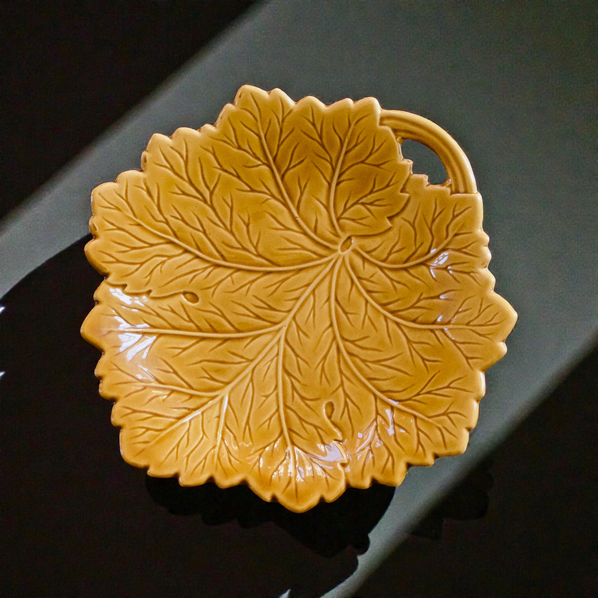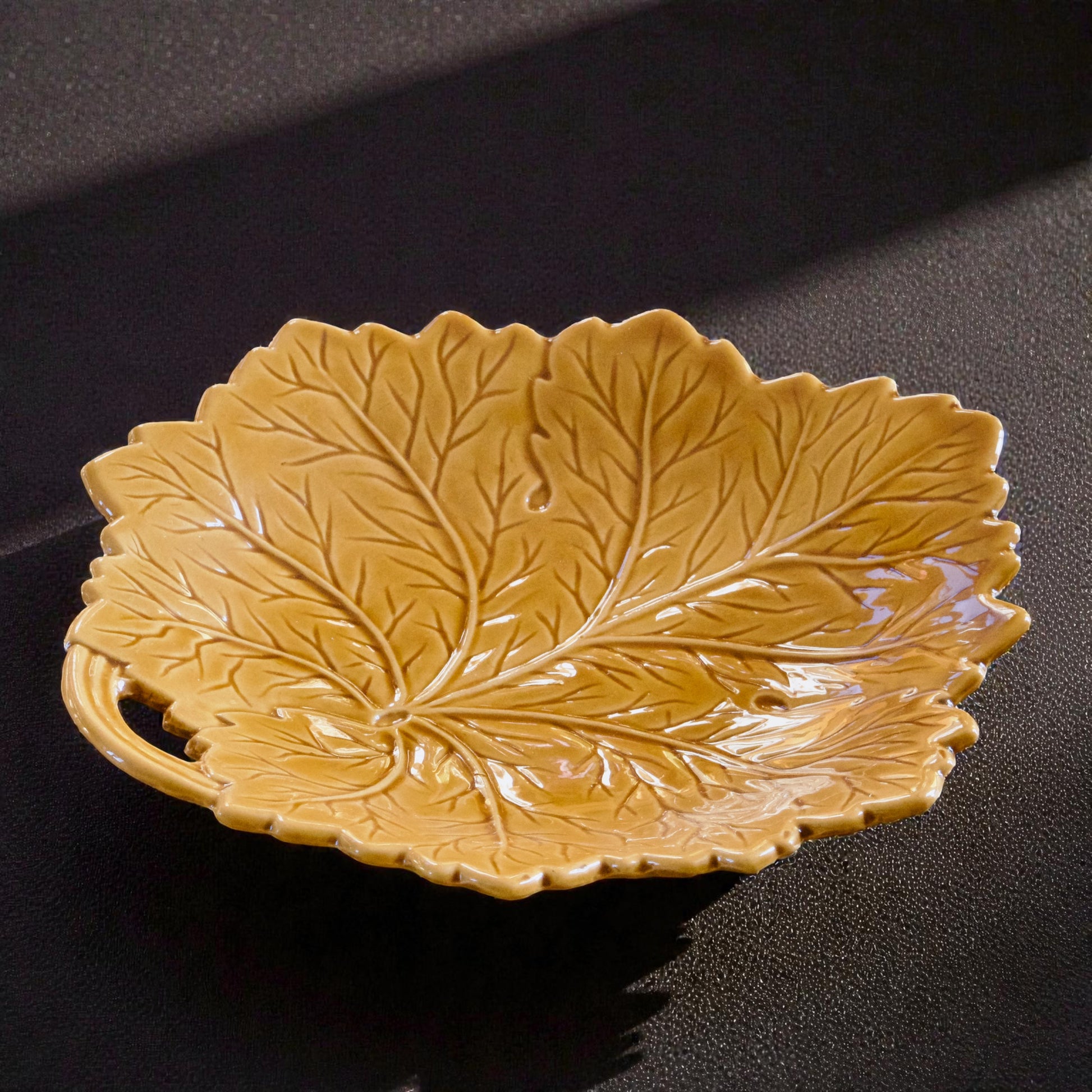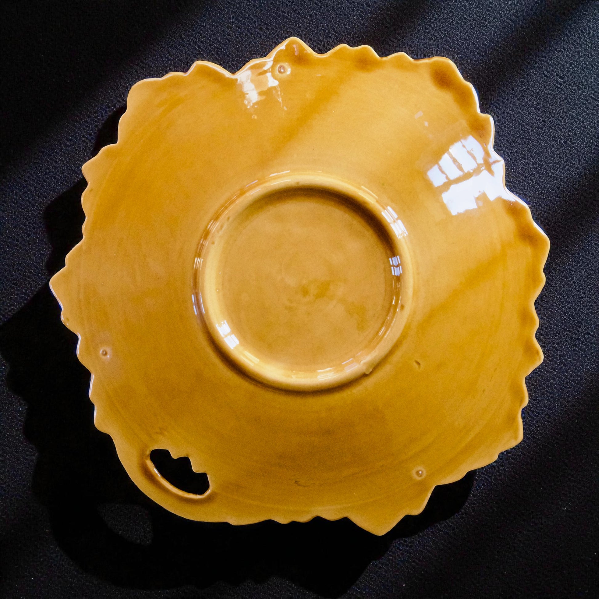 Grand vide-poche vintage en barbotine en forme de feuille.